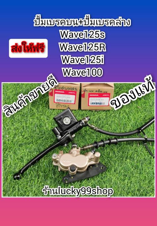 ปั้มเบรคบนแท้เวฟ125 + ปั้มเบรคล่างแท้สีทองเวฟ125S เวฟ125R เวฟ125i ไฟเลี้ยวบังลม แท้เบิกศูนย์ พร้อมสาย
